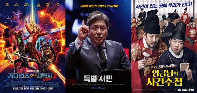 예매 영화순위 Top7 1위 가디언즈 오브 갤럭시2 2위 특별시민 3위 임금님의 사건수첩 스머프 비밀의 숲
