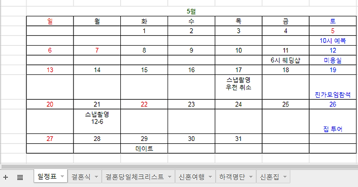 구글 독스 일정 관리를 위한 엑셀 캘린더 달력 자동화 파일 네이버 블로그