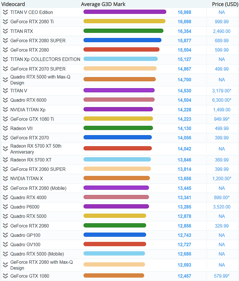 2020년 그래픽카드 최신 순위 확인 하기 벤치마크 등급