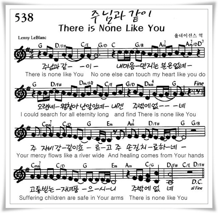 There Is None Like You 주님과같이 영어 찬양 악보 광주 성령교회