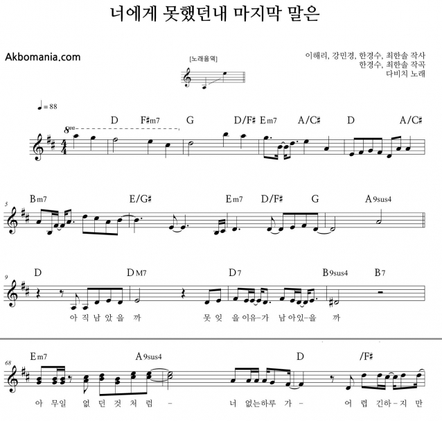 너에게 못했던 내 마지막 말은 악보