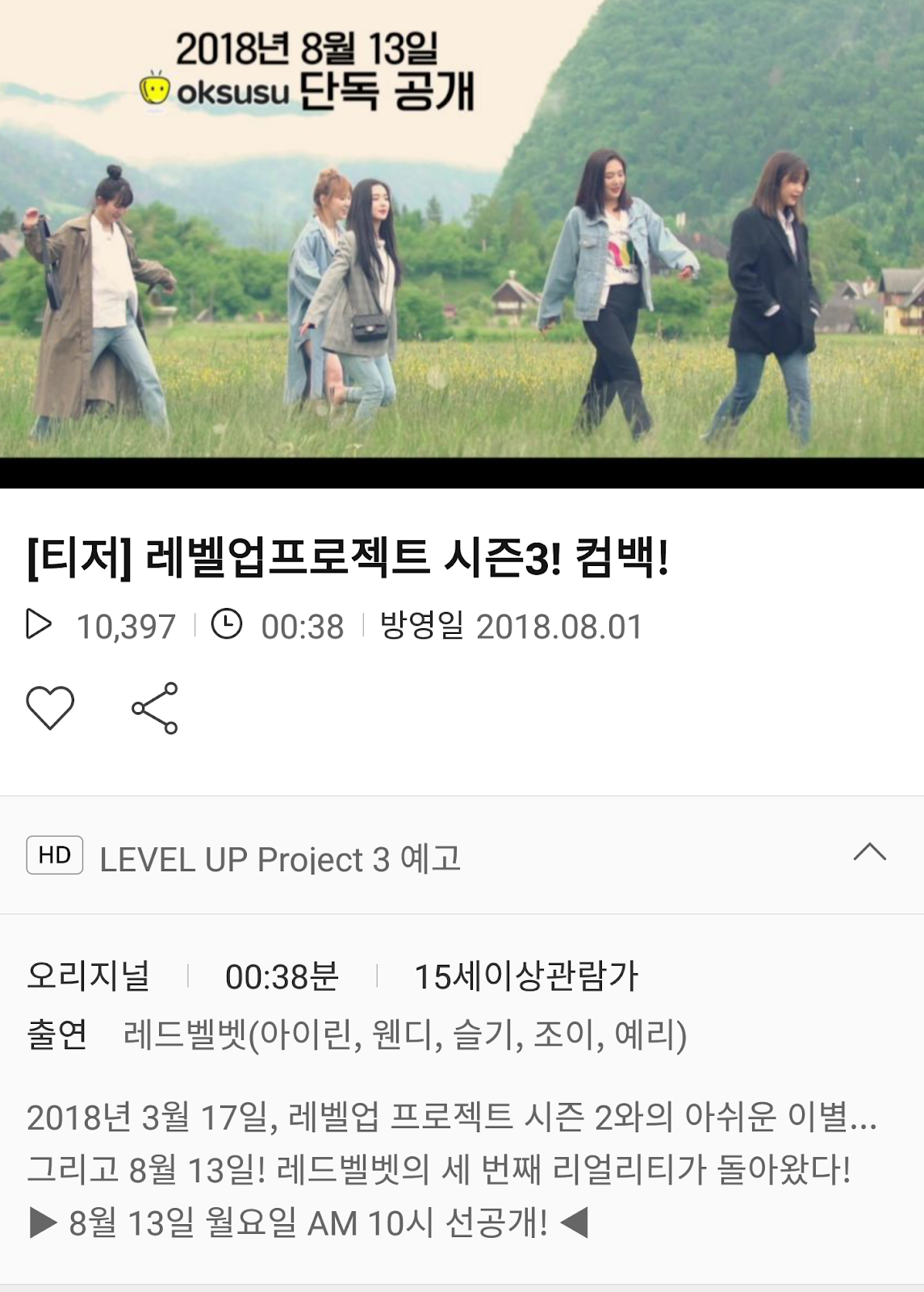 레드벨벳 Love 레벨업 프로젝트 시즌 3 정주행 각 나왔습니다 레드벨벳 Facebook
