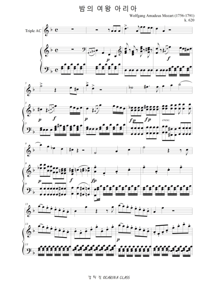 플룻듀엣악보 W Mozart Queen Of The Night Aria 모짜르트의 밤의 여왕 아리아 플룻악보 피아노악보 다운 네이버 블로그