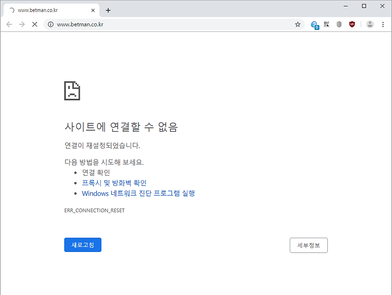 사이트에 연결할 수 없음 크롬 해결방법 토렌트등 특정사이트