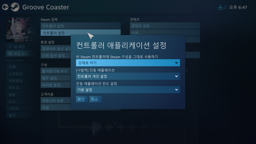 스팀 컨트롤러 설정 변경