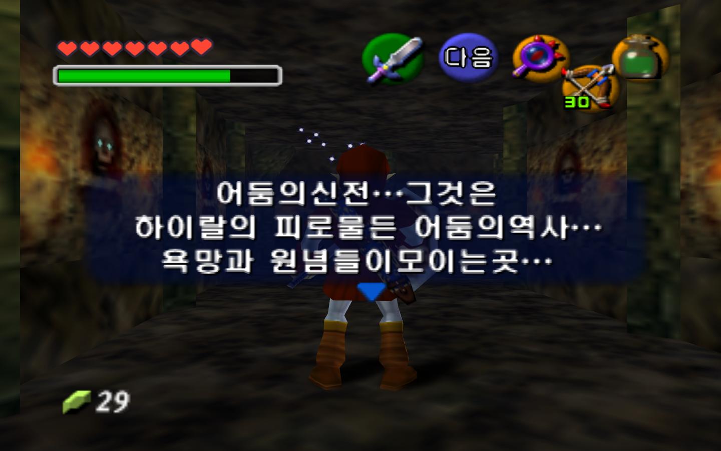 2018년 11월 21일 canary 1081버전. 아무래도 시간의 오카리나는 링크의 뒷설정을 밝히는 경우가 거의 없기 때문에 예외가 숲의 신전 클리어 후 주인공이 어떻게 살아왔는지는 npc들과의 대화를 통해서 추측하는 수 밖에 없다. 본 젤다의 전설 시간의 오카리나 공략은 n64버전의 시오입니다. 시간의 오카리나 공략 00.