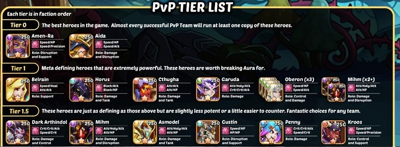 아이들 히어로즈 2020년 최신 등급표 Pvp 티어