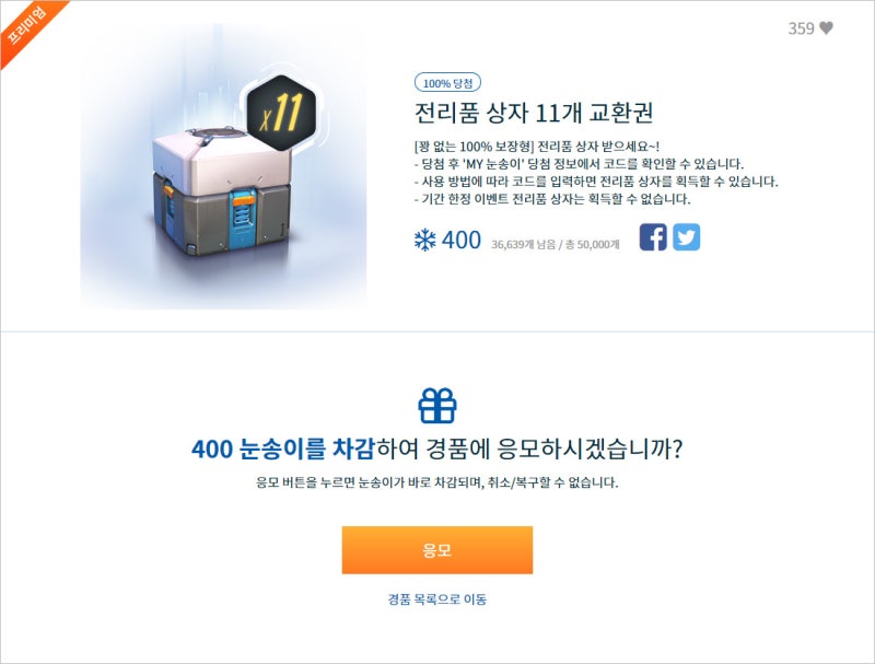 오버워치 눈송이 교환소 100 당첨 전리품 상자 네이버 블로그