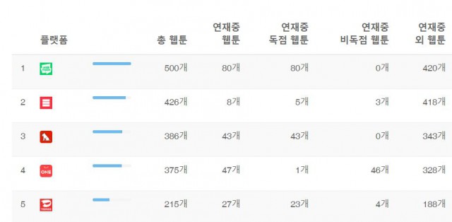 툰가 랭킹 올해 웹툰 제작 1위 플랫폼은 레진 부진 케이툰 꼴찌 Webtoonguide All About Webtoon