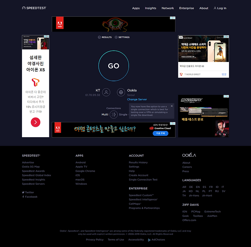 인터넷 속도 측정 Speedtest Net