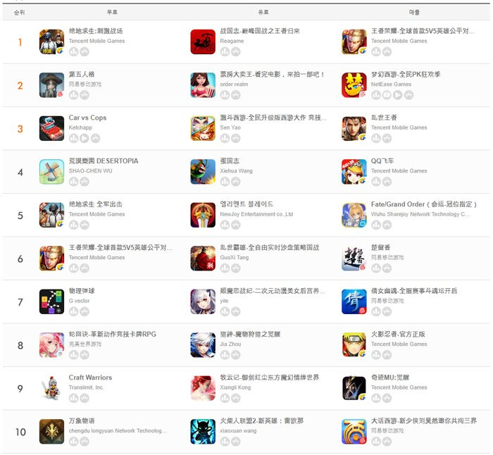 해외 모바일 게임 순위 미국 일본 중국 Ios Android