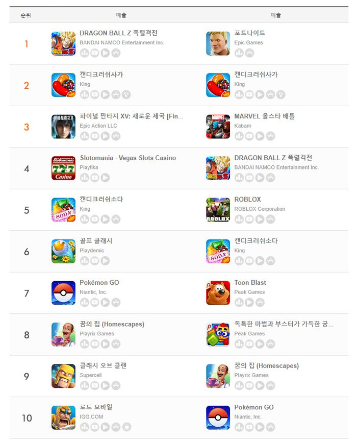 일본의 매출 순위 단골 모바일 게임들 헝그리앱 게임뉴스