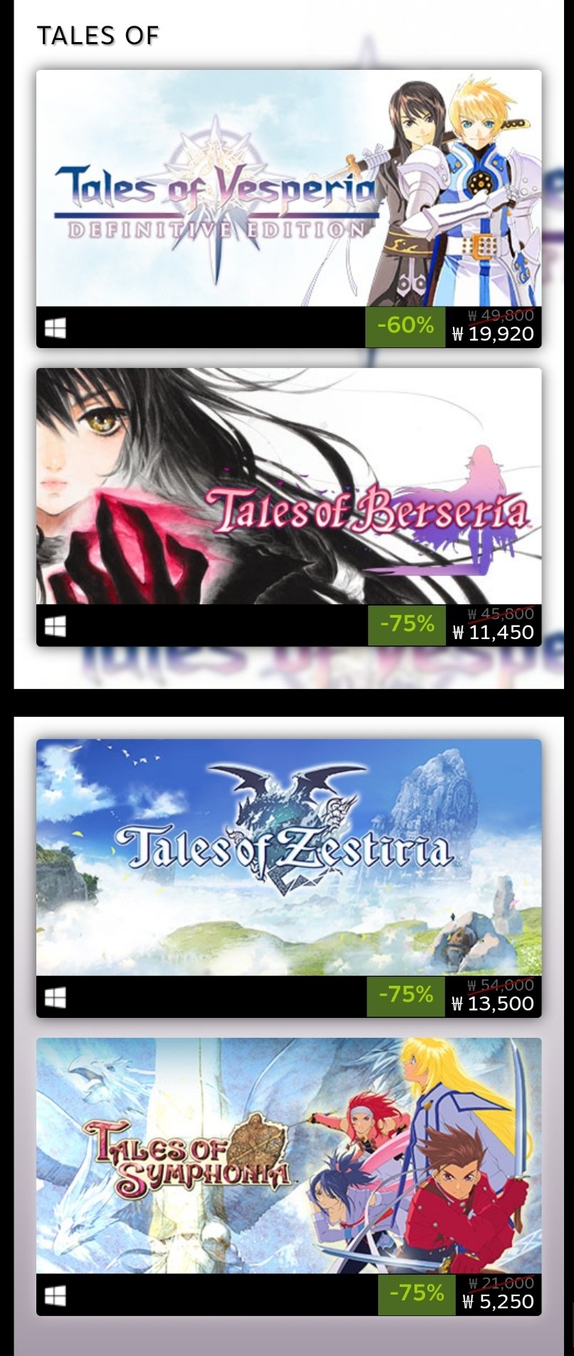 리라시에 On Twitter 안녕하세요 스팀 테일즈 오브 시리즈 할인 소식 전하러 왔습니다 감사합니다 반남엔터배급 할인이라 다른 겜들도 할인있긴한데 제 안중이 테일즈오브시리즈라 캡쳐는 이것만들고옴 Https T Co Cukm6vl6yt Https T Co Ejhmzniank