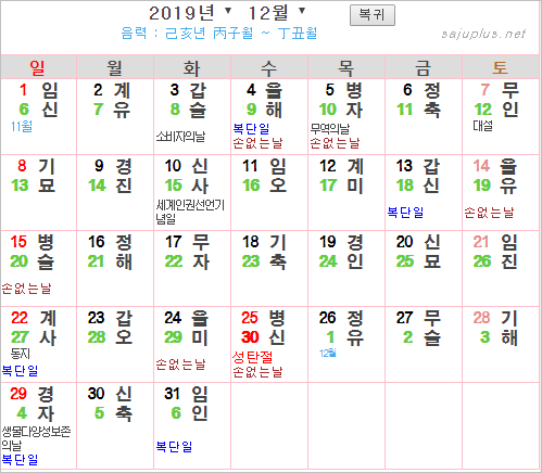 2019년 음력달력 일진달력 불교달력 네이버 블로그