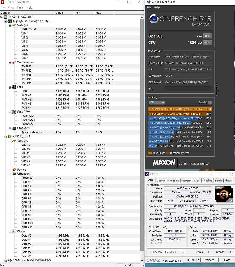 오버클럭 Ryzen5 3600 Ddr4 16 2 오버클럭 결과